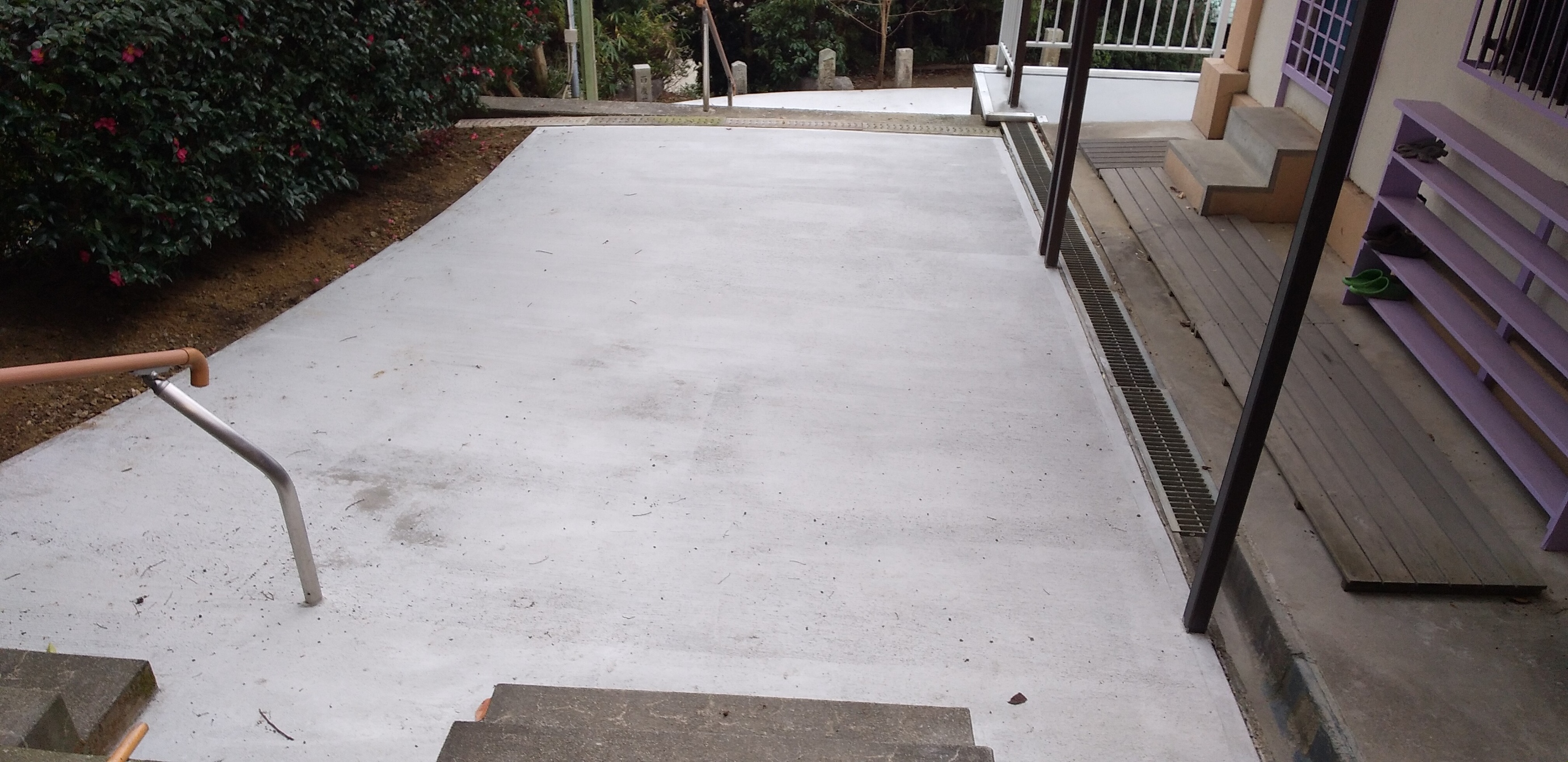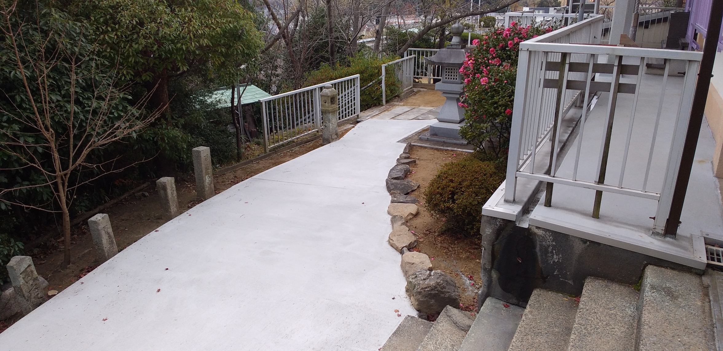 ![]() お社の中にコンクリート洗い出し仕上げの施工をしました。 ![]() 綺麗に洗出しができました。 ![]() ![]() お社までの通路は刷毛引きで仕上げました。 |